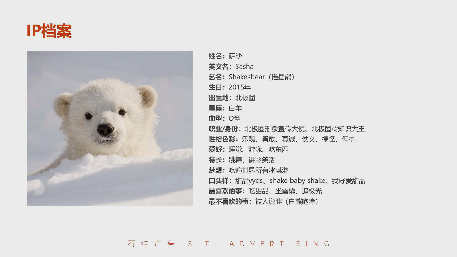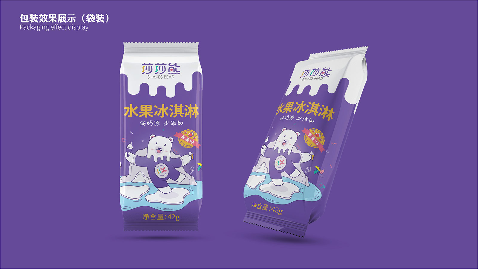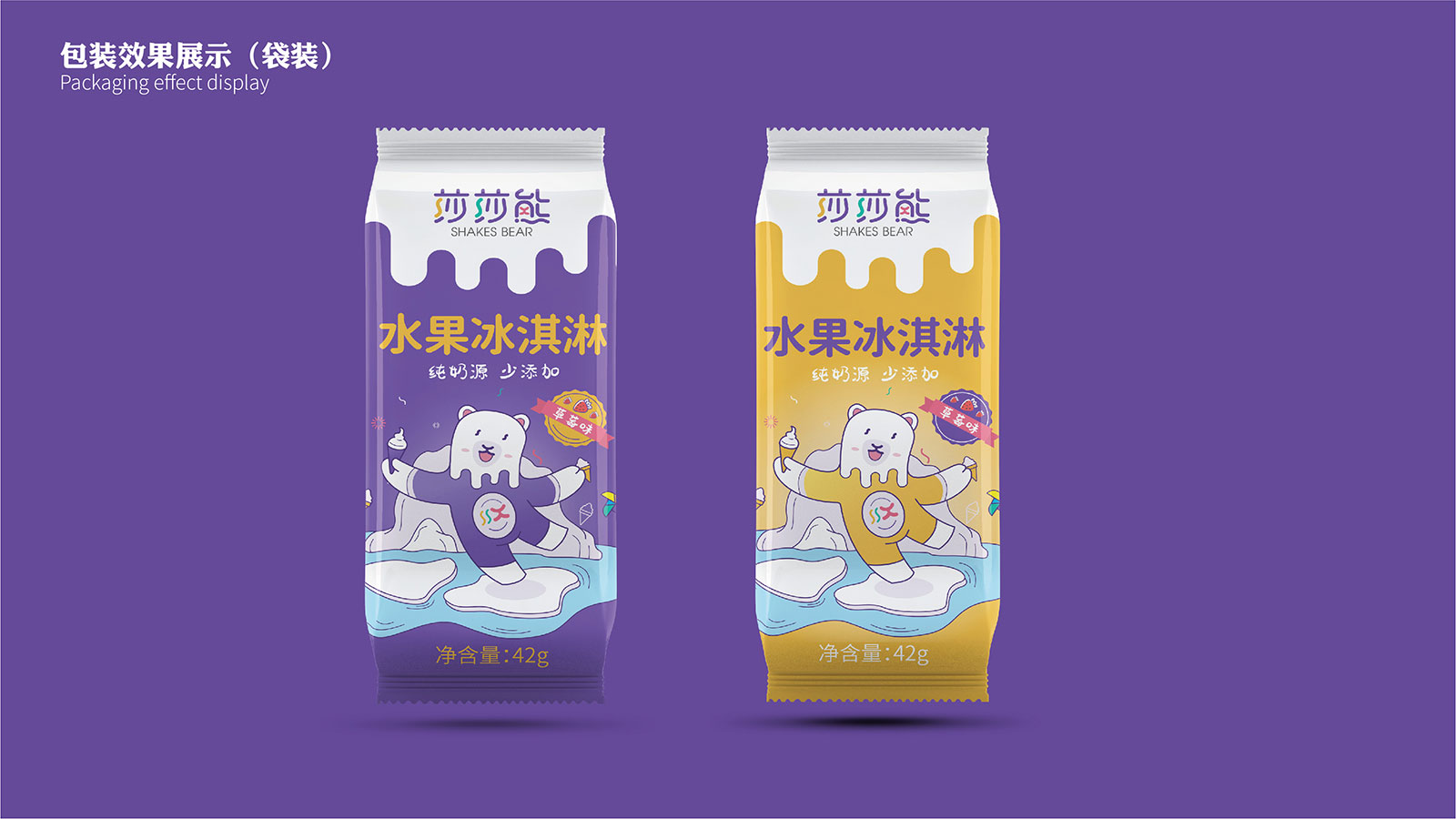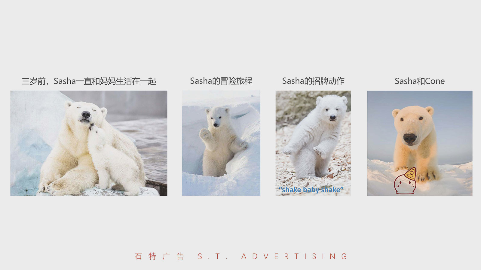 通過對兒童冰淇淋市場的核心洞察及人群定位,我們將目標群體鎖定在00后及10后。透過對企業及品牌的自我審視,基于Z世代消費洞察以及80/90年輕一代父母的消費選擇,我們賦予莎莎熊品牌“安全、新趣、快樂”的基因,基于品牌的核心定位,展開莎莎熊品牌文化、內容、形象、包裝的策劃設計之路。我們以年輕、快樂、新潮的logo字體設計與色彩組合形成品牌獨特的視覺記憶點;我們以北極熊為原型,創作莎莎熊專屬的IP形象——Shakesbear(搖擺熊),并賦予其健全的人格、動人的故事、歡快的動作,力圖跟大小朋友們打成一片;產品策劃部分,我們提出“純奶源,少添加”、“小分量,更健康”的產品核心定位,并將品牌形象色彩及風格淋漓盡致地展現到包裝上。新消費升級時代,冰淇淋市場之爭愈發激烈,精準的品牌定位、創意的品牌形象、豐富的內容傳播將是莎莎熊品牌成功開啟市場的三把密鑰。新領域、新市場、新賽道,石特助力新勢力快速啟動,全力為新品牌保駕護航!