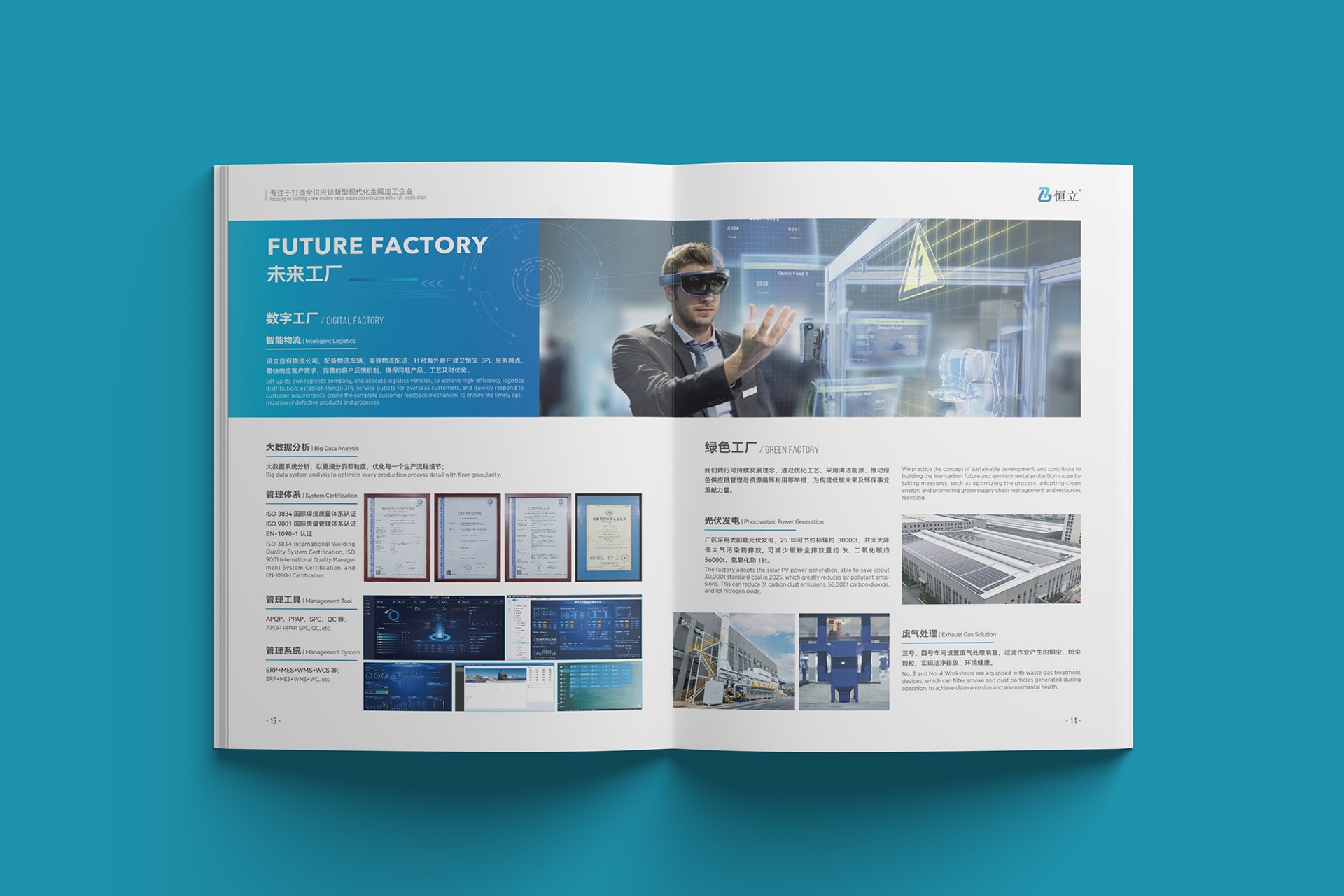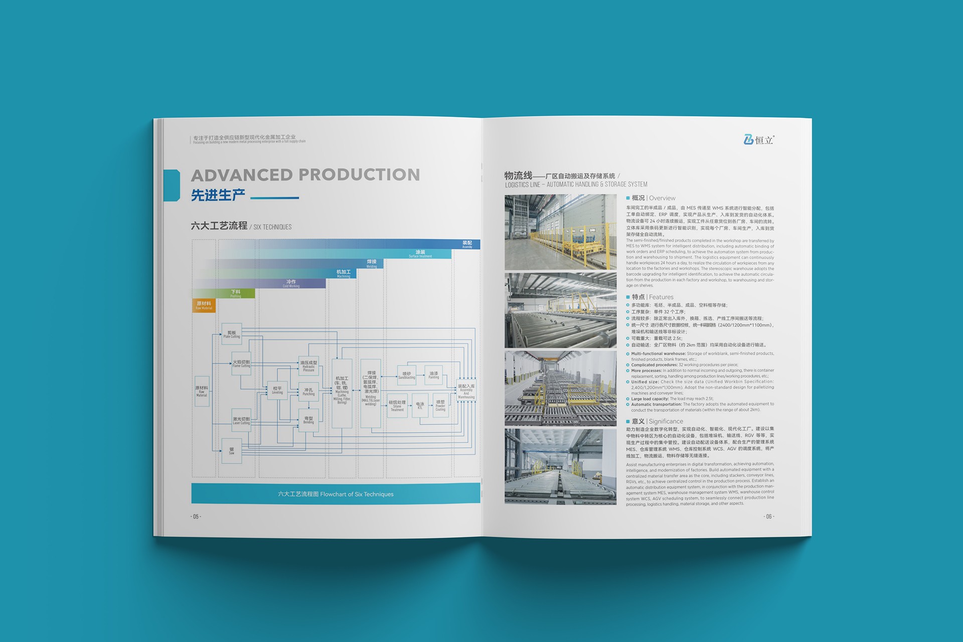 內(nèi)頁(yè)布局:通過模塊化設(shè)計(jì)清晰展示恒立的核心業(yè)務(wù),包括原材料供應(yīng)鏈、精密加工技術(shù)、表面處理工藝及物流配送體系,圖文并茂,一目了然。