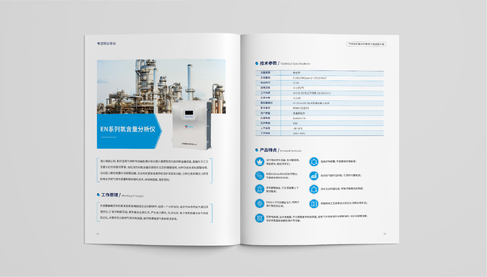 3、內(nèi)頁將產(chǎn)品詳細展示,并針對每個產(chǎn)品進行細致介紹。同時,在每個產(chǎn)品介紹中加入工作原理、技術(shù)參數(shù)、產(chǎn)品特點等信息,讓客戶更全面地了解泰仲科技所提供的氣體分析解決方案及產(chǎn)品。