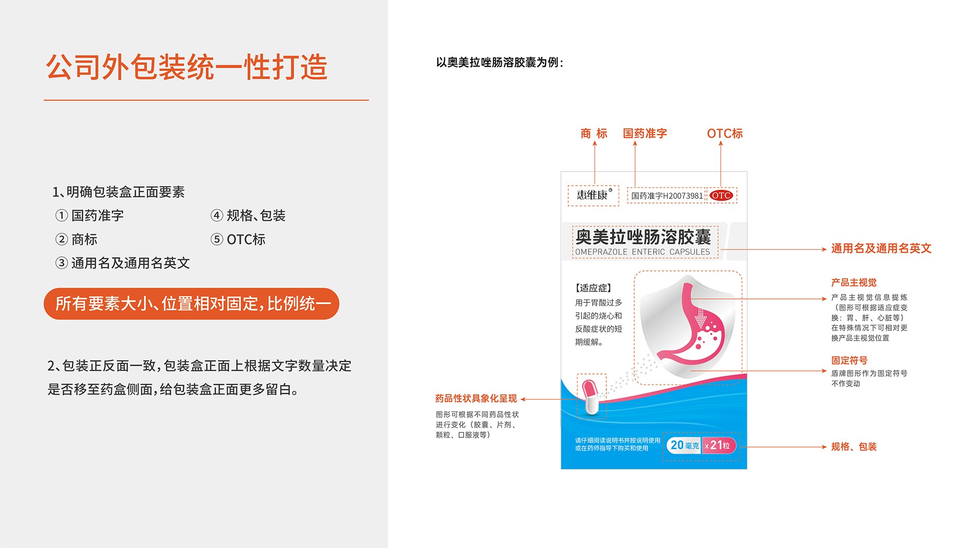 產(chǎn)品外包裝設(shè)計打造的方向和目標(biāo):1、增強統(tǒng)一性,外包裝版型統(tǒng)一,各要素統(tǒng)一,大小、比例、位置相對固定;2、提高辨識度,外包裝醒目易辨,充分體現(xiàn)產(chǎn)品家族式管理,提高不同企業(yè)之間的辨識度、公司產(chǎn)品之間的辨識度、同一產(chǎn)品不同規(guī)格之間的辨識度3、增強美觀度,版面簡潔美觀,各要素大小、比例、位置設(shè)置合理,圖形、色塊和色彩搭配協(xié)調(diào)。