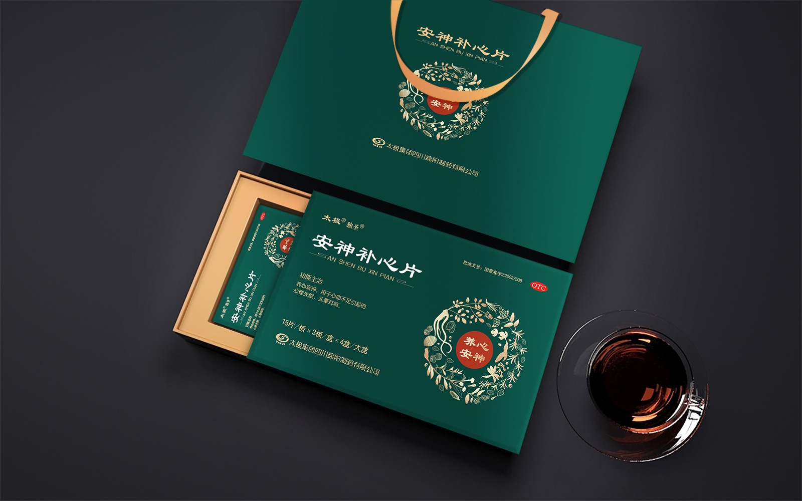 畫面以傳統(tǒng)色為主基調(diào),傳統(tǒng)色彩強烈,古方氣息濃郁,同時整體版式簡潔大方;畫面中,+味藥材環(huán)繞,代表取道地藥材之精華,將中藥以簡形插畫表現(xiàn)出來,藥材靈動、真實、原生態(tài)的形象既增加設計之美感,又凸顯產(chǎn)品之珍貴,更彰顯企業(yè)與品牌之底蘊。