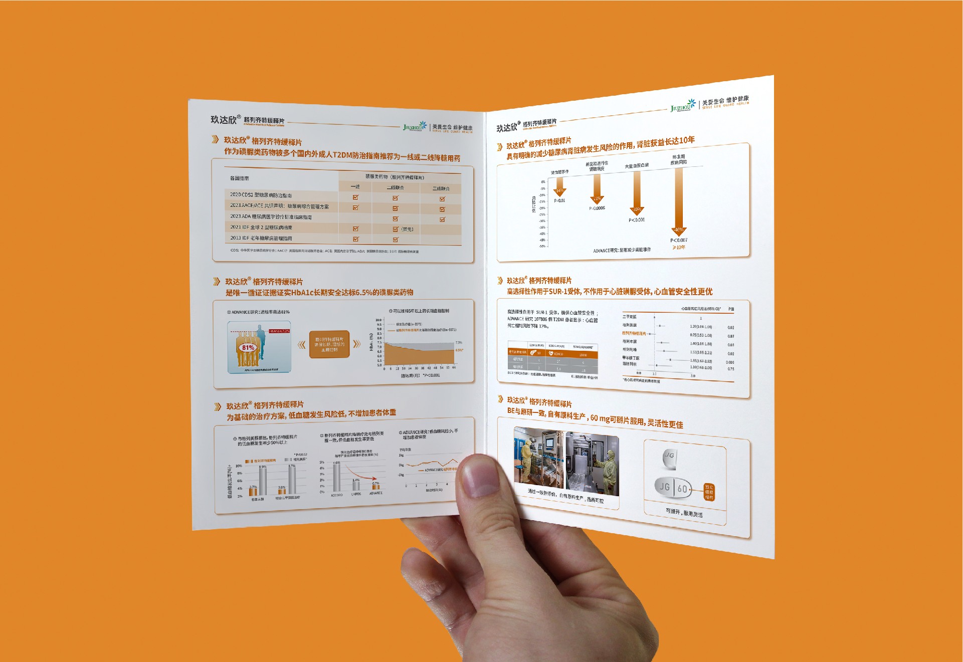 玖達(dá)欣”格列齊特緩釋片-2型糖尿病的基礎(chǔ)用藥,適用人群廣泛,持久降糖,安全優(yōu)效。 玖達(dá)欣”格列齊特緩釋片-24小時(shí)平穩(wěn)有效控制血糖,維持5年以上的長(zhǎng)期血糖控制。 玖達(dá)欣”格列齊特緩釋片一磺脲類中低血糖風(fēng)險(xiǎn)最低,體重影響小。玖達(dá)欣”格列齊特緩釋片一降低血管并發(fā)癥,長(zhǎng)期使用安全性更優(yōu),腎臟獲益長(zhǎng)達(dá)10年。 玖達(dá)欣”格列齊特緩釋片一自有原料生產(chǎn),60 mg 可掰片服用,靈活性更佳。