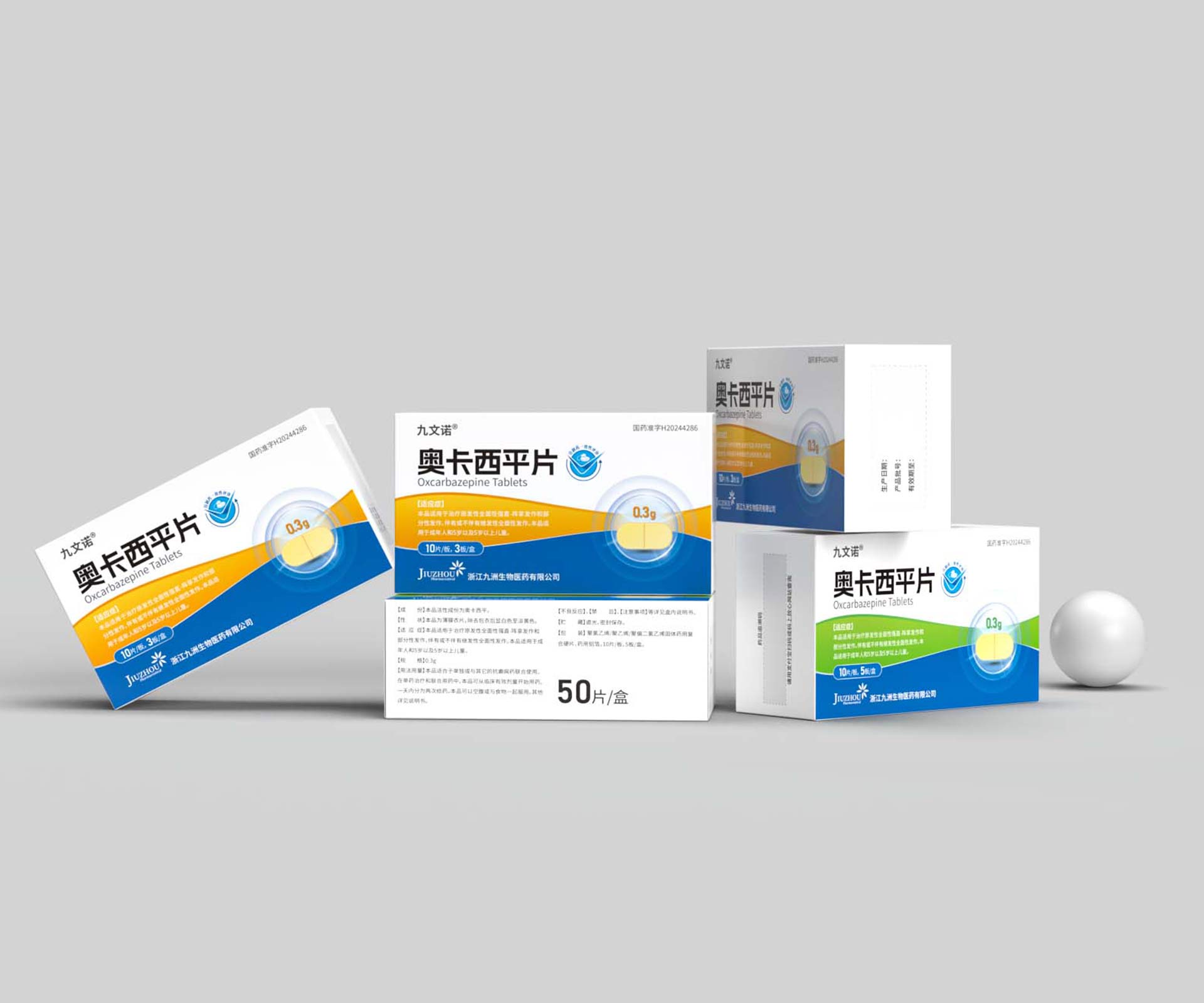 三、品牌形象與定位    奧卡西平片的包裝設計在品牌形象塑造方面也做得相當出色。通過簡潔明快的色彩搭配和清晰醒目的信息呈現,該藥品成功塑造了一個專業、可靠的品牌形象。同時,包裝盒上的“浙江九洲生物醫藥有限公司”字樣也進一步強調了產品的生產背景和品質保障。    在定位方面,該藥品的包裝設計充分考慮了目標消費者的需求和心理預期。通過突出產品的核心特點和優勢(如適應癥、用法用量等),該藥品成功吸引了目標消費者的關注,并激發了他們的購買欲望。